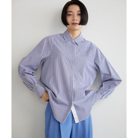セットインスリーブに比べて肩のシルエットが柔らかいのが特徴のハンマースリーブ仕様を採用。前立ては比翼×グログランがポイントで、詰まったレギュラーカラーとギャザーを入れたボリュームスリーブで女性らしさもプラスしています。クリーンな印象でデイリー使いにぴったりのアイテムです。・水洗い可同型の大きいサイズ:■サンプル撮影商品■こちらの商品はサンプルでの撮影となっております。実際の商品とは、サイズや色味、素材、デザイン等の仕様が若干変更になる場合がございます。