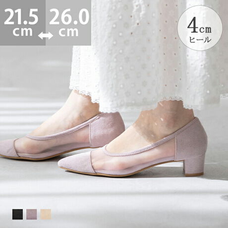 『透け感が涼しげでフェミニンなポインテッドトゥパンプス』