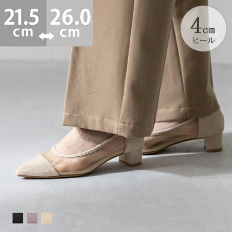 『透け感が涼しげでフェミニンなポインテッドトゥパンプス』