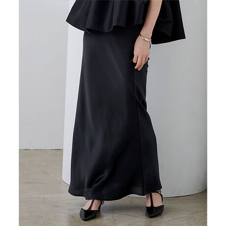 ヒップラインから綺麗なマーメイドラインを描くサテンマキシスカート。