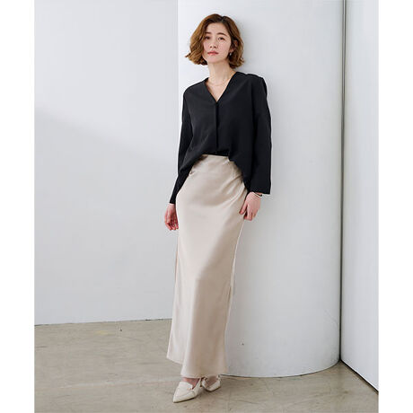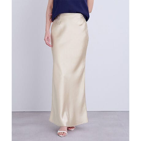 ヒップラインから綺麗なマーメイドラインを描くサテンマキシスカート。