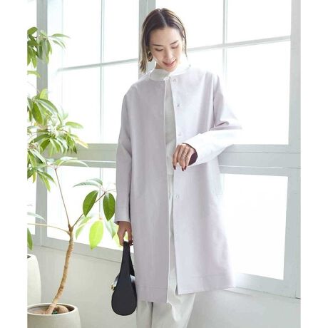 ラウンドネック ストレートなシルエットのコートは汎用性が高く、キレイめにもカジュアルにも着られるマルチコートです。袖口に長めの見返しをつけ、折り返して着用が可能です。40サイズは限定店舗展開です。