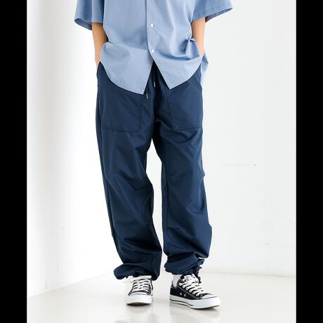 ・適度なゆとりのあるサイズ設定で、徐々に裾が狭くなるテーパードシルエット。裾を絞ったシルエットの変化も楽しめます。