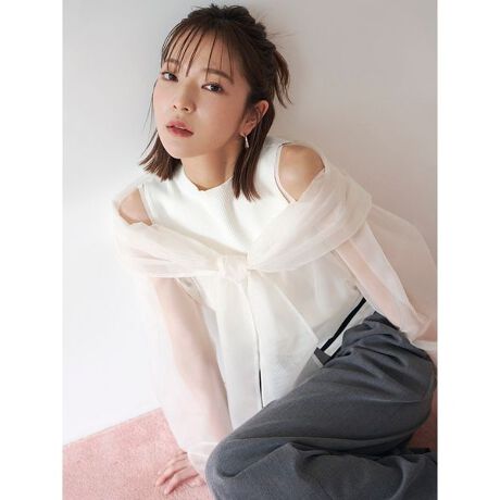 サイズ感:ニットはややフィットしてブラウスはゆったりと着用できます。