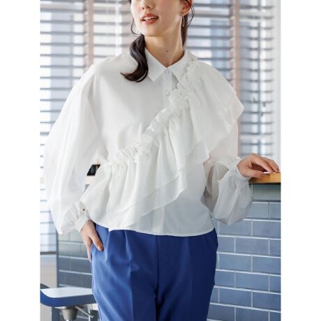 レギュラーカラーのブラウスとフリルがセットになったアイテム。