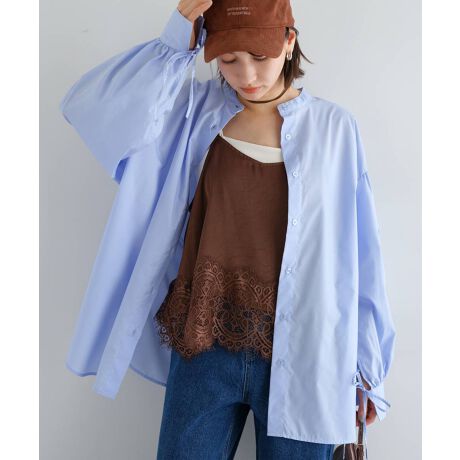 袖リボン・バンドカラーシャツブラウスが入荷しました。