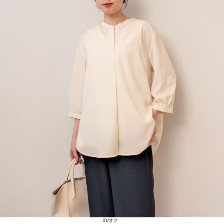 シンプルで着回しの利くきちんと感のあるブラウスです。