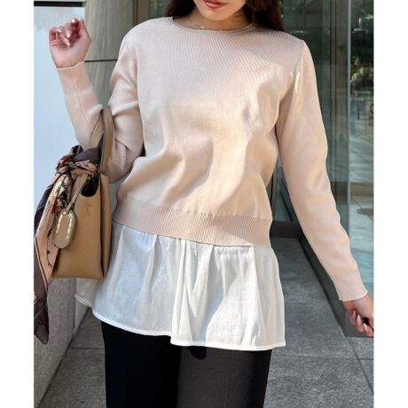 ブラウスを重ね着した様な異素材ドッキングのニットトップス。