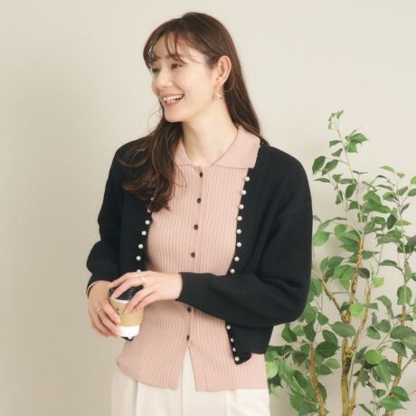 パールディテールが華やかな、お呼ばれシーンにも活躍する羽織りアイテム。