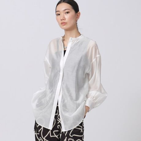 ほどよい透け感のシアー素材で仕上げた抜け感たっぷりなシャツ。