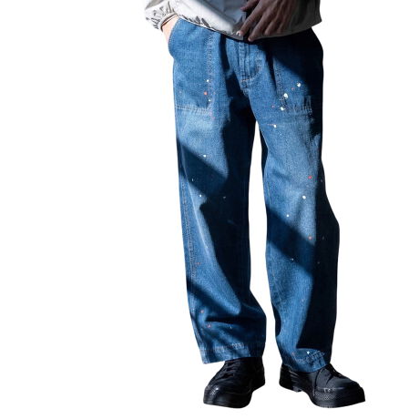 商品情報: テーパードパンツ ペイント キナリ ジーンズ ワイド メンズパンツ 春物 春 全3色 FLLP22-04 Gパン シンプル ルーズ ペンキ加工 綿100 M L インディゴ ジーンズパンツ 大きいサイズ メンズファッション ズボン パンツ バギーパンツ 無地 ドット 水玉 カジュアル アメカジ ストリート 裏地無 プレゼント ギフト おしゃれ ジェネレス GENELESS ボトムス ブルー 綿