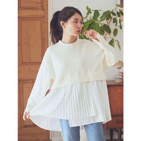 裾の異素材切り替えでレイヤード風の着こなしを楽しめるドッキングチュニック。