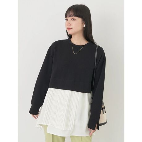 裾の異素材切り替えでレイヤード風の着こなしを楽しめるドッキングチュニック。
