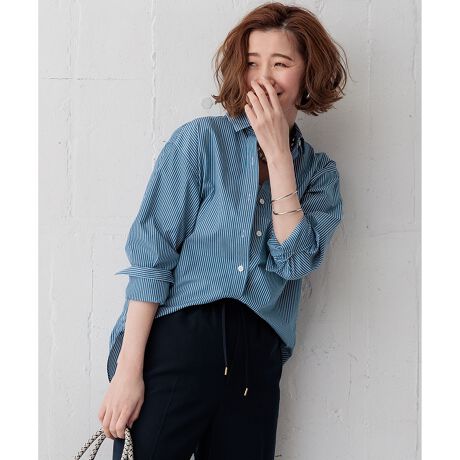 ベーシックなデザインの上質なシャツ。メンズライクなつくりですが、身幅のすっきりとしたラインがエレガントで女性らしい雰囲気を引き出してくれます。肩幅には少しゆとりを持たせているので着心地も抜群。シンプルにデニム合わせはもちろん、タイトスカートやワイドボトムスとも相性◎暖かい気温の時期は1枚でサラッと、寒い時期にはニットとのレイヤードスタイルもオススメです。カラーは、定番無地のホワイト(#001)、爽やかなサックスストライプ(#172)、上品な甘さのピンクストライプ(#112)、華やかな印象のラベンダーストライプ(#183)カジュアルにも合わせやすいレモンイエローストライプ(#140)、アクセントカラーにもなるミントストライプ(#160)、オンオフ使えるマリンブルーストライプ(#170)の計7色展開です。