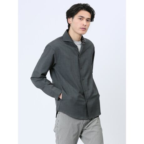 タカキュー メランジポリトロ ワイドカラースキッパー長袖シャツ
