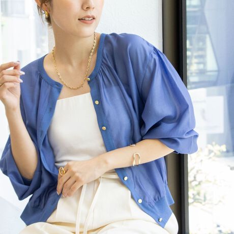 《手洗い可能》シアー布帛クルーネックカーディガン
