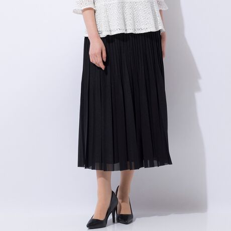 エレガンスコーディネートに欠かせない、無地のプリーツスカート。トリコット素材の柔らかな素材を使用したスカートです。