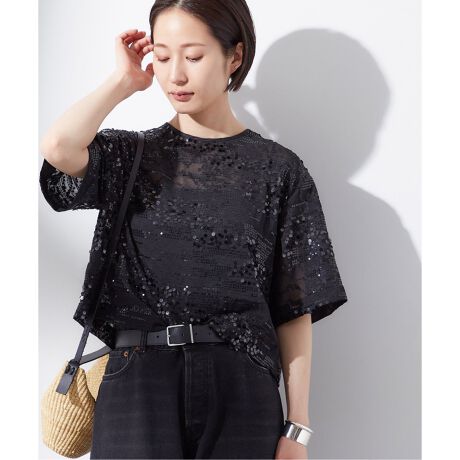 1枚で簡単にサマになるスパンコールをあしらったブラウス。