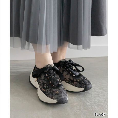 繊細なフラワー刺繍が目を惹くレーススニーカー。