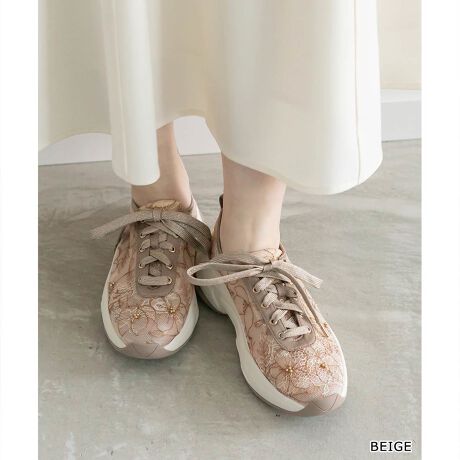 繊細なフラワー刺繍が目を惹くレーススニーカー。