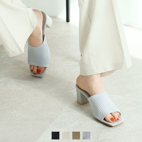【25春夏新作カラー追加】スクエアトゥニットミュールサンダル
