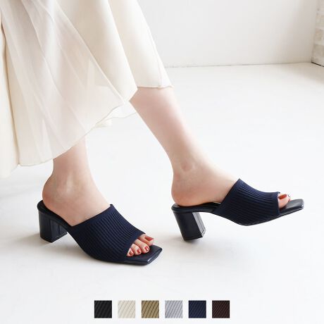【25春夏新作カラー追加】スクエアトゥニットミュールサンダル
