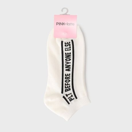 [型番:32058025]縦ラインメッセージがポイントのショート丈ソックス。普段使いにはもちろん、スクール使いにもおすすめです♪もっちりやわらかな素材で履き心地も快適◎