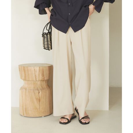 【素材特有の落ち感で、イージーパンツもエレガントモードにシフト。】