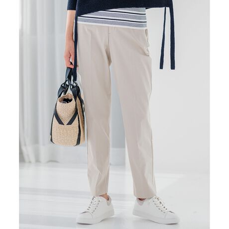 【洗える】コットンサテンストレッチ テーパードパンツ