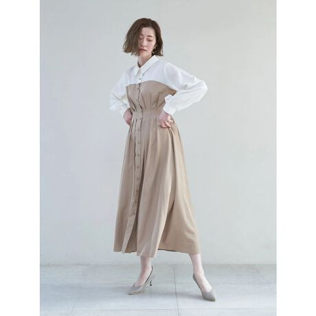 1枚で完成するレイヤード風デザインのベアドッキングワンピース。