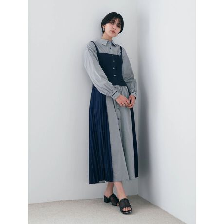 ニットビスチェとシャツワンピースの2点セット。クラシカルなストライプ柄のシャツは落ち感のある素材で柔らかな印象に。配色のサイドプリーツで切り替えたフィット&フレアなシルエットが、女性らしい雰囲気を漂わせます。ニットビスチェでスタイリングにメリハリ感をプラス。それぞれ単品でも着用できる、3way仕様のアイテムです。 透け感[無し]裏地[一部有り]伸縮性[無し]光沢感[無し]生地の厚さ[普通]付属品[有り]2セット(ワンピース・ビスチェ)ポケット[無し] 【ビスチェ】 バスト:31cm 着丈:42cm 裾幅:29cm 【ワンピース】 バスト:48cm 着丈:122cm 袖丈:58cm 肩幅:39cm ウエスト:70cm ヒップ:100cm <カラーバリエーション>ビスチェSETシャツワンピース(7A41L0H0300)