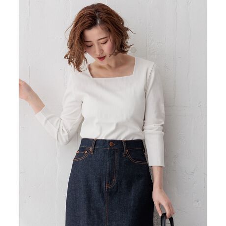 女性らしいスクエアネックがポイント、合わせるものを選ばない汎用性カットソー