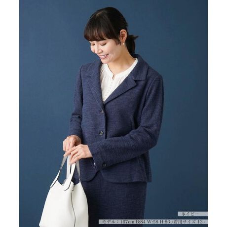 ベーシックな三つボタンのテーラードジャケットを、風合い豊かなパイル地調の生地で品よくエレガントに。シンプルなワンカラーだから、ブローチやコサージュなどのアクセもよく映えそう。セレモニーには別売りのスカートとセットアップで決めるのがおすすめ。------------------------------------春あり色によりありなしやや厚手なし-------------------------------------※商品の色味は、撮影場所や光のあたり具合、お客様のお使いの機器により色味が違って見える場合がございます。予めご了承ください。※第3ボタンは飾りボタン・飾りホールになります。 ※こちらの商品はジャケット単品でのお届けになります。※定価(税込)は、2024年6月28日のセール開始前の店舗における販売価格です。