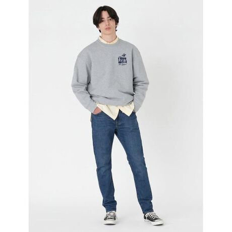 リーバイス□のベーシックシルエットの一つ。股上は、やや浅めで裾回りにかけて細くなる綺麗めのシルエット。数年穿き込んだかのような適度な色落ち加工を施したミッドユーズドカラーはどんなカラーのトップスにも馴染みやすくスタイリングしやすいのが特徴です。ハイテクスニーカーと合わせる場合はダボつきを出しながら穿くことでスニーカーのボリュームとのバランスをが取れるので裾上げをする場合もあまり短くしすぎないのがお勧め。ローテクスニーカーには合わせる場合は、裾部分に膨らみが出てしまうとシルエットが崩れてしまうので、1-2クッション出るぐらいの長さに調整するとスッキリとした印象を与えてくれます。