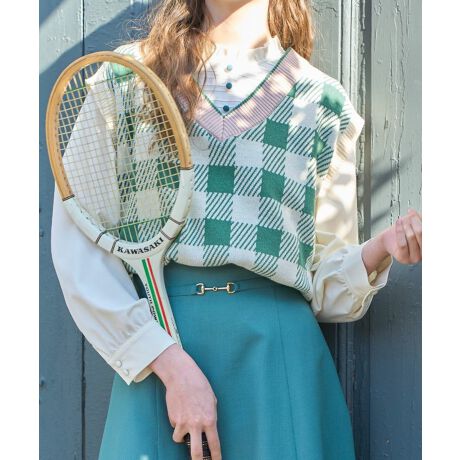 キャッチーなカラーチェックが目を惹くニットベスト。