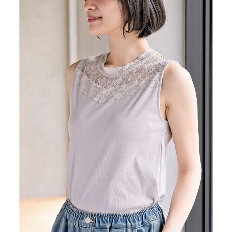 レースハイネックの大人ガーリーなタンクトップ
