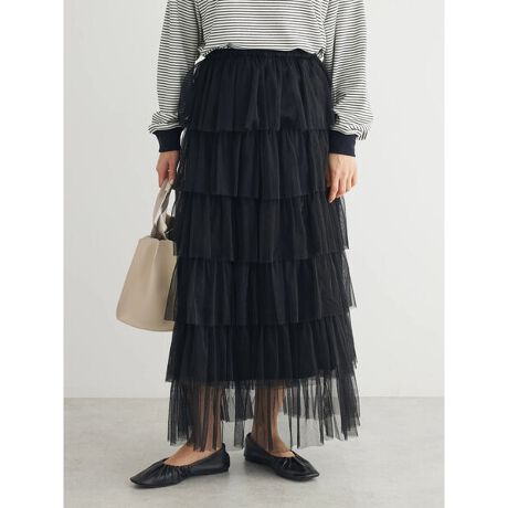 ラメがキラめくチュールをふんわりと重ねたティアードスカート。