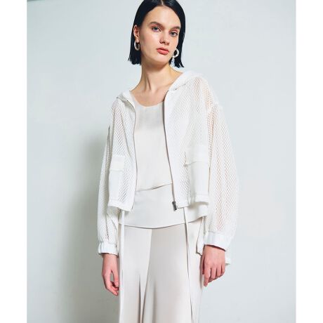 スポーティーさとドレッシーさを併せ持った、モードな雰囲気薫るフーディー。3種類の繊細なメッシュを組み合わせてシアー素材と二重仕立てにした、程よい透け感を楽しめるデザインです。しっかり前後差をつけた、ふわっとした新鮮なAラインシルエット。裾のドロストをきゅっと絞る事で、バックスタイルがボリュームのあるバルーン型になり、シルエットの変化も楽しめます。フーディーならではのスポーティーな雰囲気がありつつもクラス感のある、ドレスにもさらっと纏える一着です。