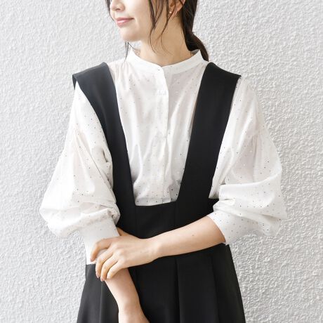 箔のドットプリントがのったビッグシルエットのシャツ。