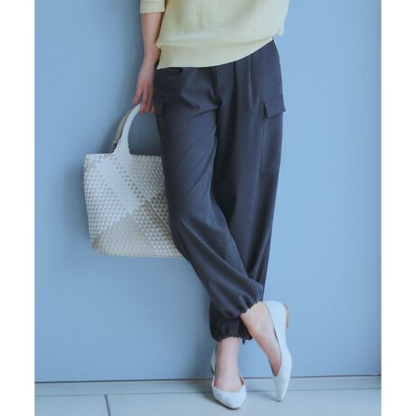 カジュアル過ぎない大人のためのパラシュートパンツです。柔らかくシルキータッチなストレッチ素材を使用しているため、カジュアルダウンし過ぎずキレイめにも着用していただけます。ボリューム控えめなワイドストレートシルエットで体のラインを拾わないのも嬉しいポイント◎。裾にはゴムスピンドルがついているので、絞り加減はお好みで調整可能です。 ゆったりとしたニットにはもちろん、シンプルなカットソーなどのトップスにも合わせても、こなれた印象になる汎用性の高い1枚です。ベーシックなアイボリー(#002)、やわらかい雰囲気のブラウン(#030)、シックで合わせやすいブラック(#005)の3色展開です。