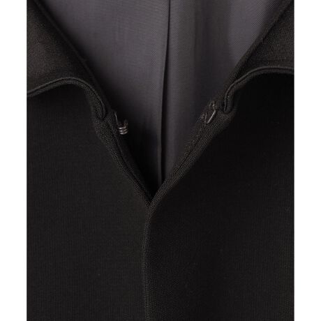 ワンピース:前のスナップを開けて頂くとファスナーが隠されており、腕を回すことなく脱ぎ着ができるようになっております。1枚でもまるで上着を羽織っているように見えるフェイクレイヤード風のデザインで、余計な装飾のないシンプルかつ上品で細見えが叶う計算されたおつくりです。