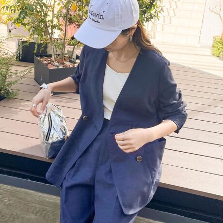 ・ノーカラーでかっちりし過ぎず、カジュアル合わせもしやすいデザインです