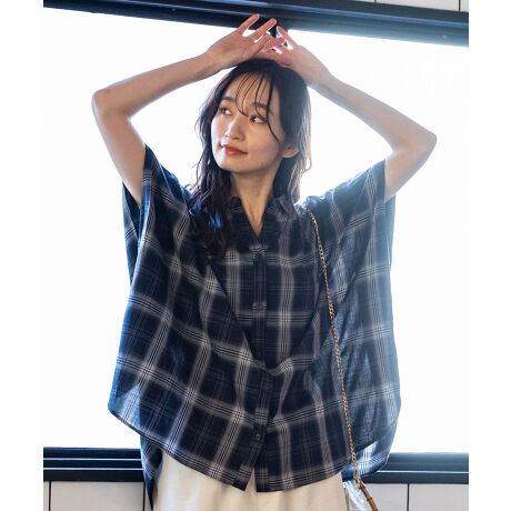 【大きいサイズ】 21号(6L〜) トーンオントーンチェックシャツ