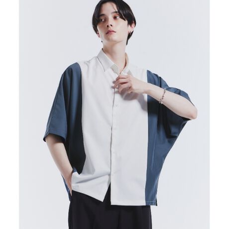 ゆったりとしたサイジングと脇下の大きく広く開いたドルマンシルエットが特徴のシャツ。