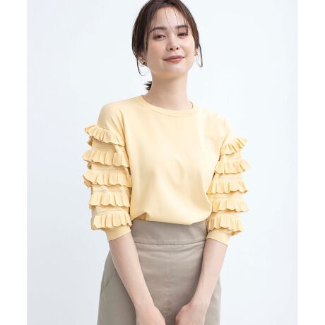【WEB限定カラーあり】MINA 袖フリルニットプルオーバー