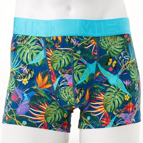 HOM ASIAシリーズのボクサーパンツ。HOM独自の世界観が楽しめる個性的なデザインと、HOMを代表する水平ポケット(HO-1)の使いやすい前開き、少し太めのウエストゴムが特徴。こだわりのパターンと素材で履き心地を重視した作りになっています。ナイロン素材は弾力性に富み、なめらかな肌触りが人気の素材です。サイズ表記はインポートサイズなので、ワンサイズ下のサイズをおすすめします。(例/EUサイズS=JPサイズM)