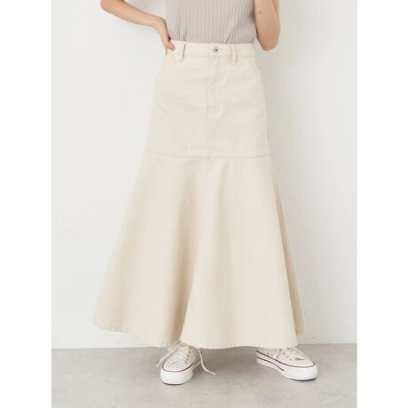 ペプラム風で切り替えたマーメイドシルエットのデニムスカート。