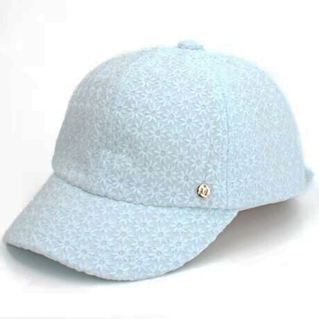 花柄レース地ボディが上品な印象のベースボール型のキャップ。