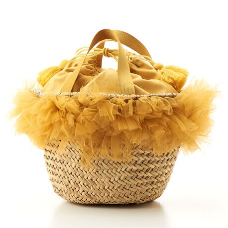 バレエのチュチュを連想させるフリルがゴージャスなかごバッグ。