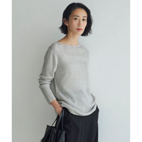 【洗える】 ペーパーブレンドシャインニット プルオーバー